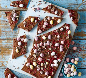 Scatter the top with the rest of the mini eggs / malteasers and leave to set.